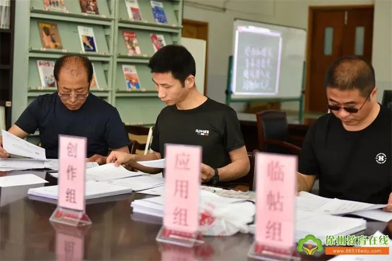 5月14日下午,按照赛程进入评选环节。此次复赛评选邀请的评审组成员有:徐州书法家协会副主席、徐州市中小学书画艺术教育协会会长翟立新,江苏师范大学美术学院书法系副教授、中国书法家协会会员刘淮,中国教育学会书法专业委员会理事、江苏省书法家协会会员孙晋忠,原徐州二中教科室主任程庆园,徐州艺术馆原常务馆长胡泳,贾汪开放大学艺术学院副院长周雷霆,徐州市公园巷小学李广泳老师,沛县大屯矿区中学李虎老师,徐州市星源小学蔡海澄老师,徐州市新元小学主任刘劲水,徐州经开区实验学校顾学克老师,徐州市语委办负责人马龙浩,徐州市语委办王雁,徐州教育在线总监周燕青参与现场工作。