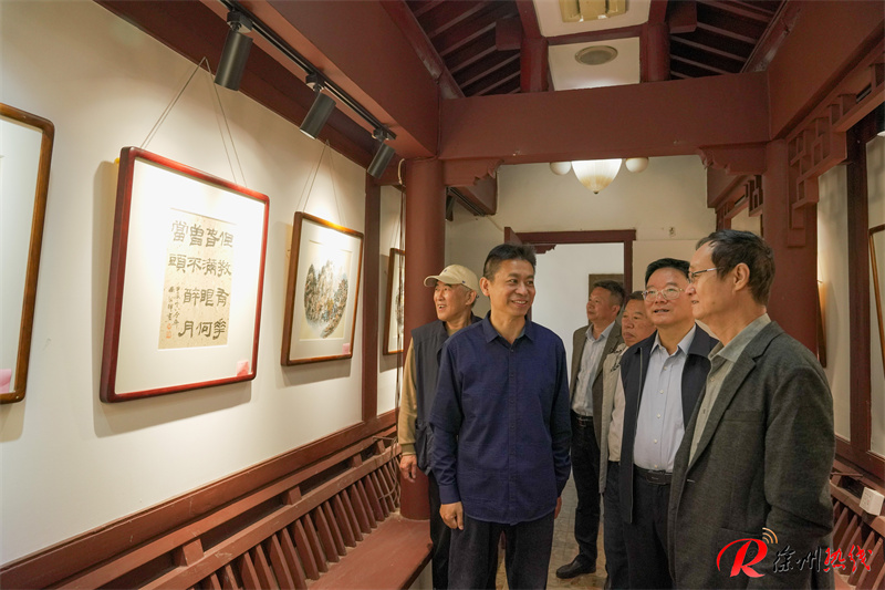 在陈新生会长陪同下,李景新教授观看了“千古风流苏徐州”苏轼文化展板,参观了东坡画廊“常德怀海”书画展,对苏轼知徐州年谱长卷尤为关注,对徐州苏学研究的深度和扎实的工作非常赞赏。
