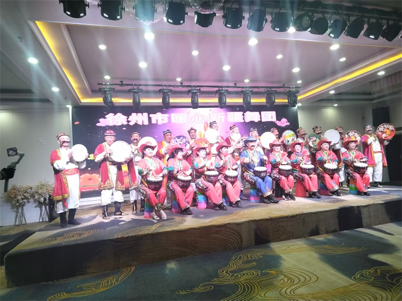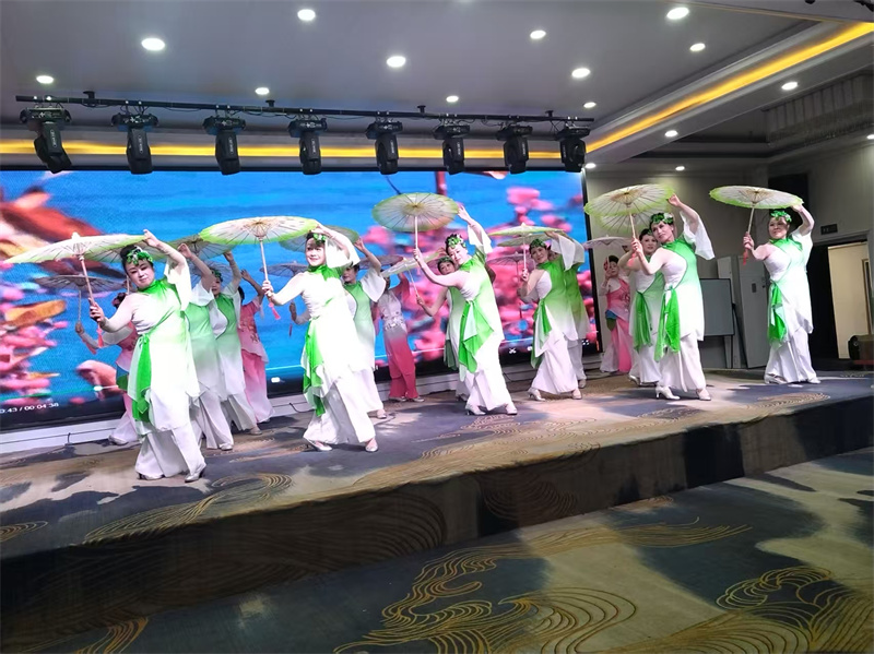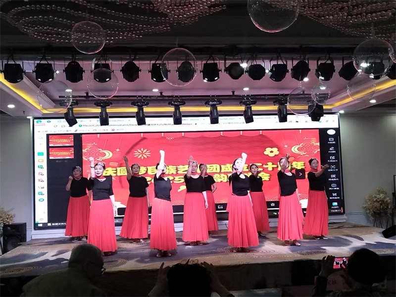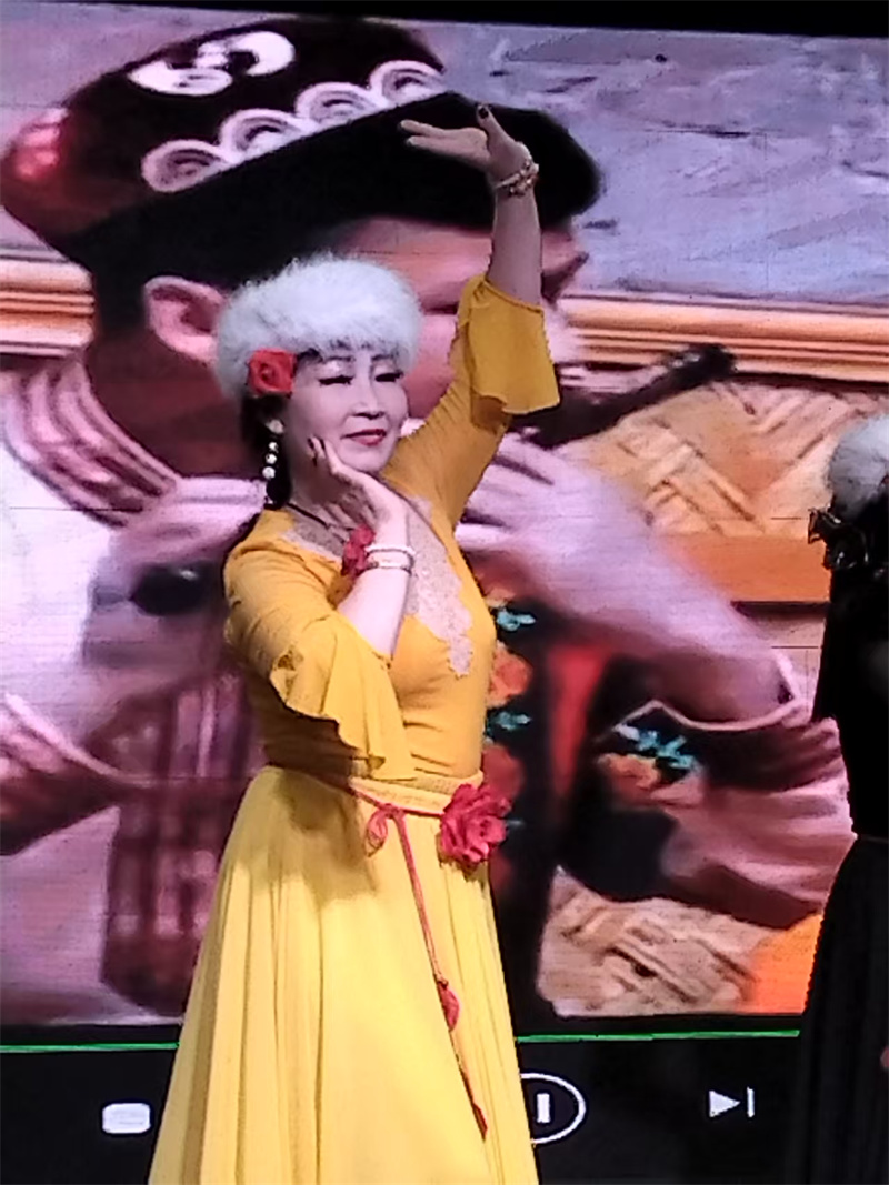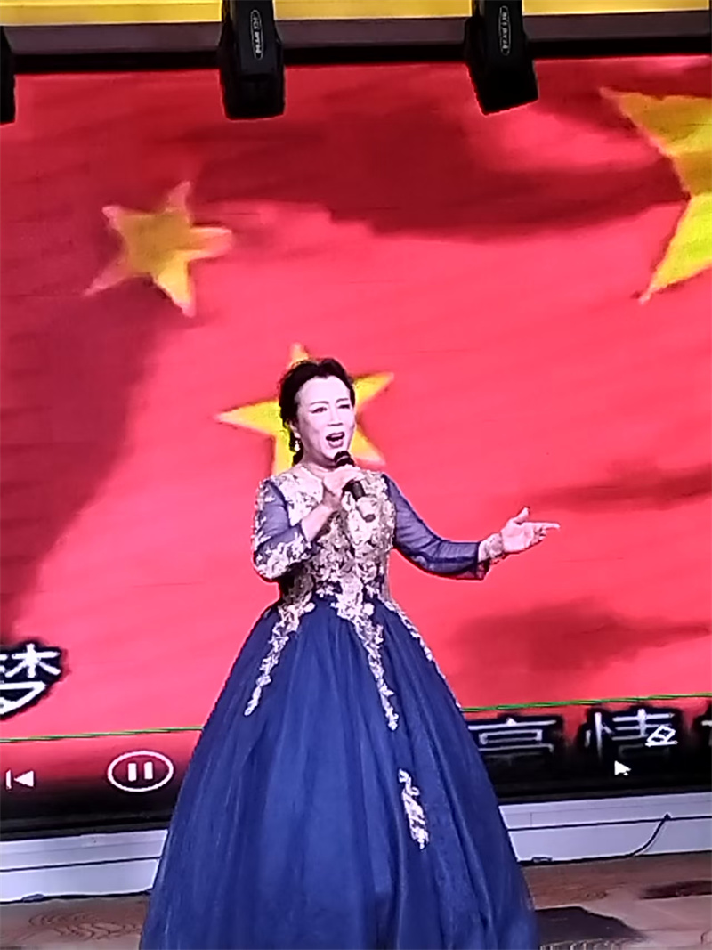 舞台灯是打翻的星河,为舞者披上鎏金云锦。她们是暮春枝头最鲜妍的杏花,虽鬓角染霜,却将《我爱你中国》的赤诚、《祝福祖国》的深情,酿成岁月窖藏的佳酿。张玲女士的《报答》如老酒入喉,周广杰先生唱《敢问路在何方》时眼角的细纹里,藏着走遍徐州城巷的星月。哈宝林团长说,二十年里他们曾用歌声抚慰过社区孤寡的皱纹,用舞步丈量过乡村晒场的月光,那些在老年大学伏案研习的晨昏,终化作《东方之珠》里永不褪色的家国乡愁。