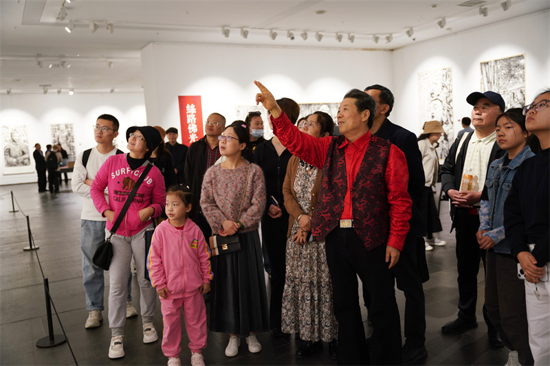 马培童的现场创作,以“刻石皴”为桥梁,将焦墨的物理特性与文明的精神重量熔铸一体。当最后一笔焦墨在宣纸上定格时,观众目睹的不仅是山水或人物,更是“时间的质感”——那些被凿刻出的历史肌理、被焦墨凝固的文化基因,在黑白交织中完成了从技法到哲思的史诗级转场。