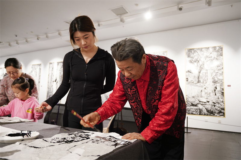4月26日上午,徐州艺术馆。著名焦墨画大师马培童先生举办的焦墨画技艺公开课正在这里进行。观摩听讲者既有老者,也有孩童。