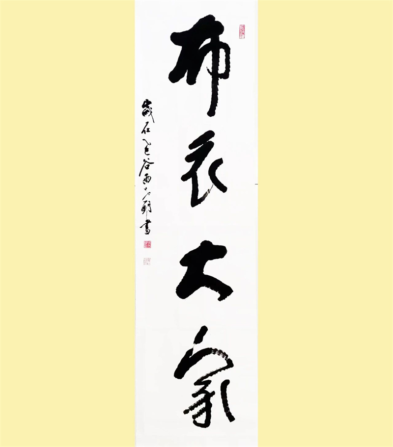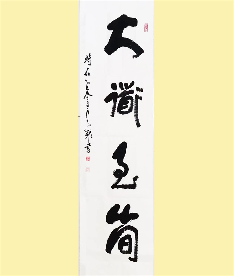 《大道至简》,遒劲有力、笔法娴熟、布局合理精到,不仅给人以书法艺术的享受,而且说明世间所有“大道”都不应复杂,无论是教育、医疗、政治、经济、军事、外交,都不复杂。最高的智慧,最超强的能力,皆是既简单又易行、又高效。所有人为的复杂、繁琐、故作高深等,都是别有用心、消耗民脂民膏,都是其本身的“异化”和反动。《大道至简》是对中国古老文化的高度概括和最本质的表述,也是书以载道的最具有代表性的集中体现。