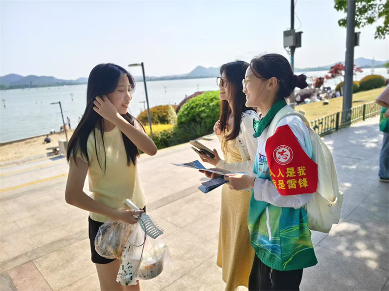 当今的时代,人们越来越遵守法律的约束,越来越文明,越来越愿意共同守护我们共同的家园。因此,在《条例》施行十周年的今天,我们云龙湖一站式服务驿站的志愿者们大力筹划了这次宣传活动:大家或者站在驿站旁边宣讲、或者坐在志愿台前互动、或者走进人群之中发放册页,以此庆祝它的诞生与成长。市民游客们也深受感染,积极参与其中,有的甚至朗读起我们打印的法则条文,发自心底地乐意接受它、维护它、践行它。