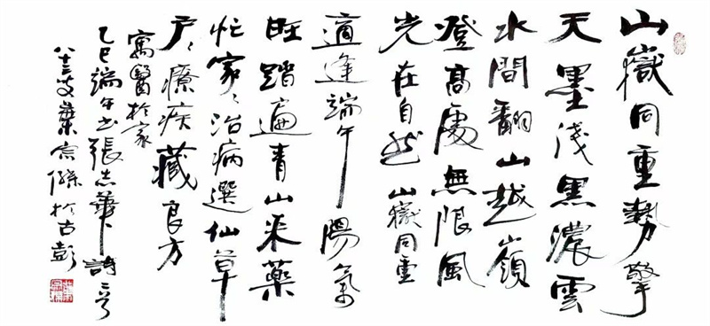 83岁翁,著名自学伯英体代表性传承人叶宗杰老人,读完张志华先生诗后,欣然命笔书写了《寓医于家》《山岳并重》二首诗。