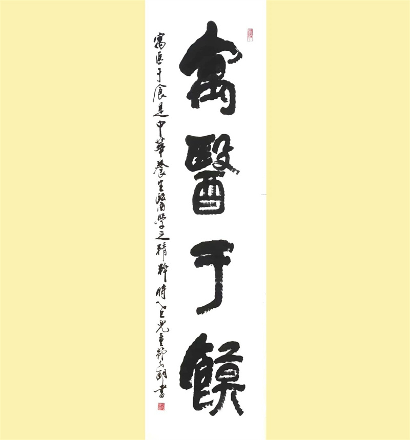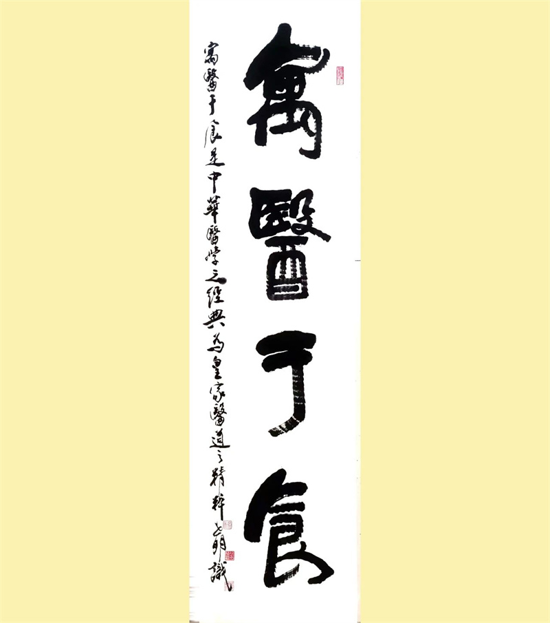 何谓新闻?曾有“人人心中所有,个个笔下所无”的便是新闻。从人人皆知的“冬吃萝卜夏吃姜”延伸开去,不就是“寓医于家”吗?于是,我编出并写出创造性的书法新闻——《寓医于家》。