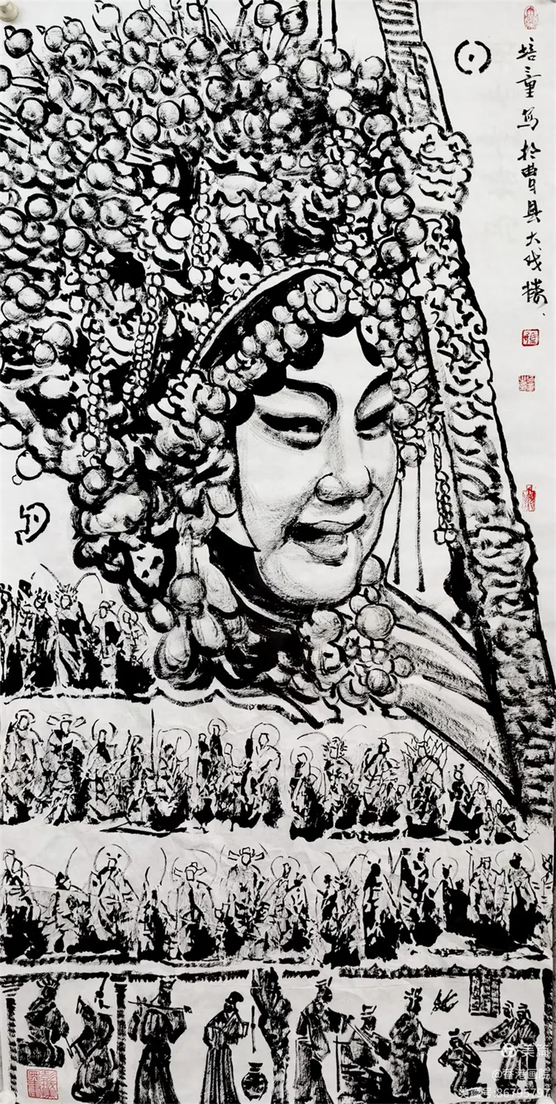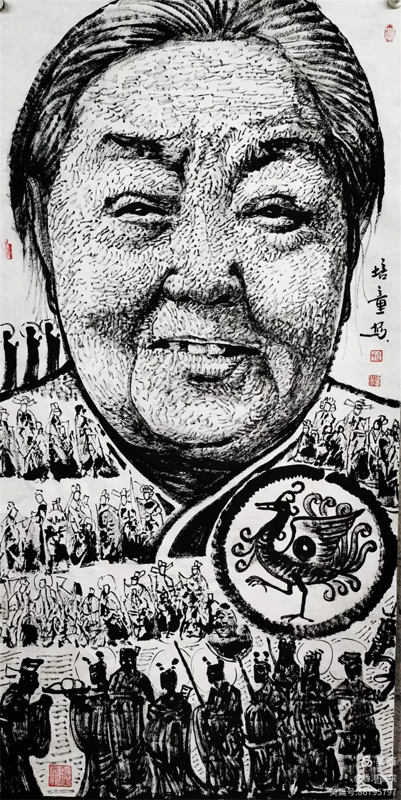 4、马培童,在焦墨画技法上创新,发明了(彭城刻石皴)技法。又开壁了彭城焦墨新汉画的创新之路。是彭城画派的新领军人物。