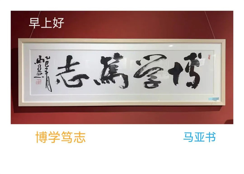马亚先生传达出的精神内涵:“博学笃志”本身蕴含着追求知识、坚定志向的积极意义。马亚先生通过行草书的形式,将这种精神内涵以艺术化的方式呈现出来。作品中奔放洒脱的笔势,体现出一种对知识的渴望和对志向的执着追求,仿佛在激励观者不断进取、博学广识。