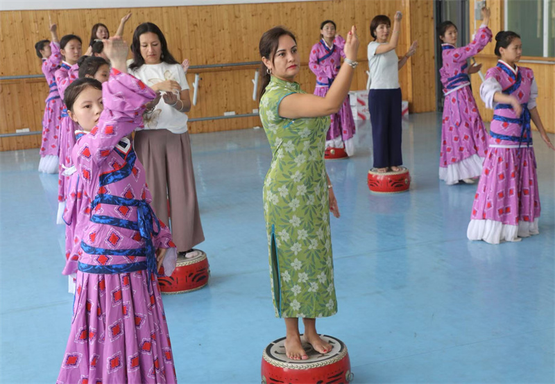 秘鲁师生在江苏模特艺术学校体验中国舞