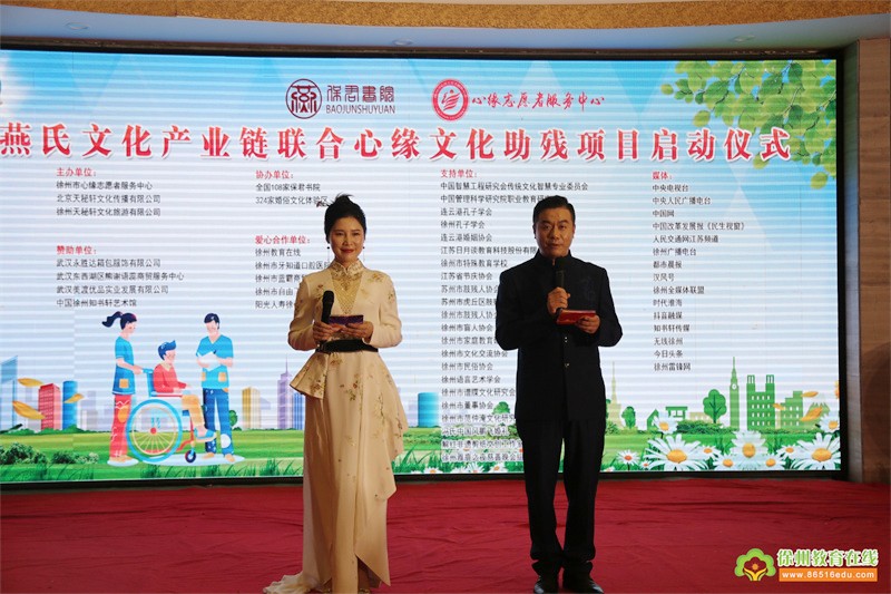 2023年10月16号下午,由北京天秘轩文化传播有限公司和徐州心缘志愿者服务中心联合举办的燕氏文化产业链布局暨文化助残启动仪式在江苏徐州市隆重举行。吹响了徐州文化助残的号角。