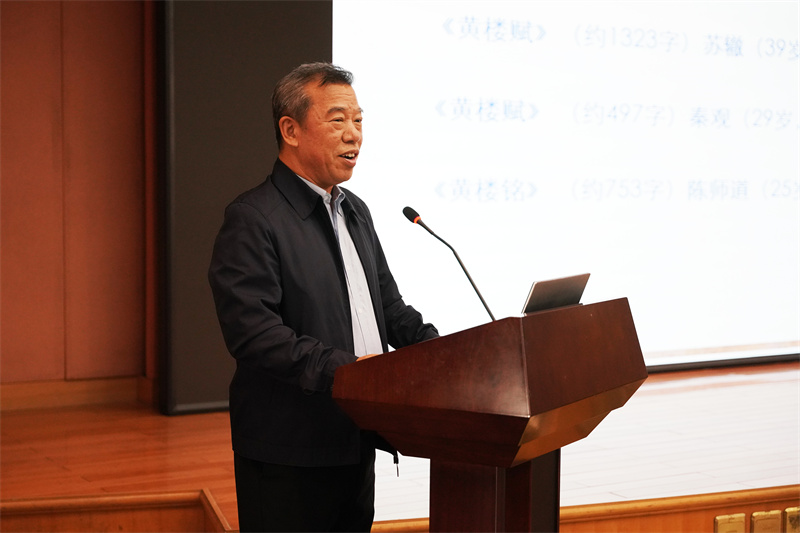 管仁福教授作了《一座黄楼,三篇华章——谨此纪念苏轼徐州建黄楼945周年》主题分享。黄楼是是纪念苏轼带领徐州军民抗洪胜利的丰碑,同时也是一座展示北宋文化艺术的纪念馆。管教授以著名文学家苏辙、秦观的《黄楼赋》和陈师道的《黄楼铭》三篇华章进行阐述。鉴赏三篇华章,还原那段惊心动魄的抗洪历史,使大家深切体会到苏轼“以民为本、遗爱于民”的黄楼精神,以及对当代人的有益启示,增强我们传承苏轼文化的自觉性和使命感。