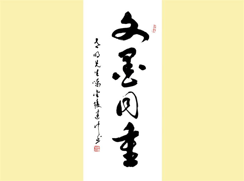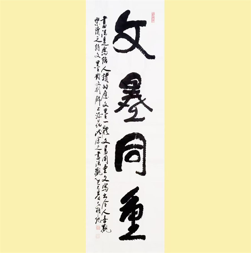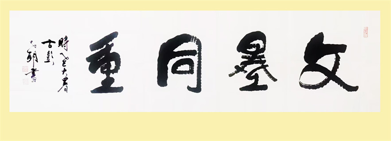 南建中先生又道:“世明此书不仅用心、用工,而且用了情。‘文墨’ 二字的俊逸潇洒与‘同重’二字的笔墨凝重相得益彰也!”