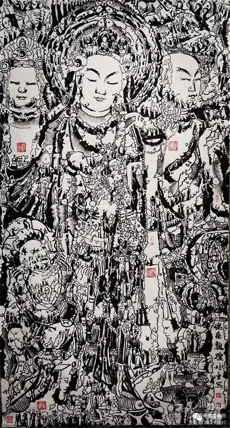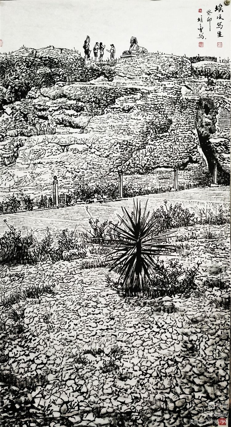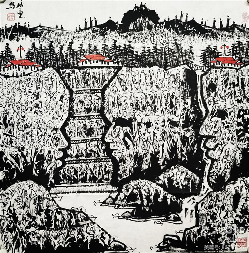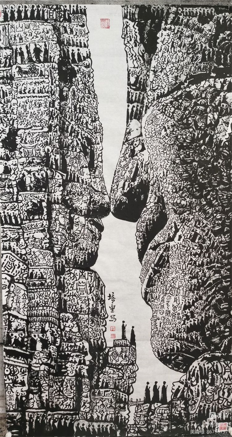 此用笔感悟,无须用任何的语言赘述。焦墨作品曾吸引了多少智者,此皴法揭开了画石窟和雕塑佛像的神密面纱,此刻石皴是一条通往成功之路、灵光的闪现大捷径,更展示了神秘的个人风挌,开劈了斩新的焦墨艺术新天地。