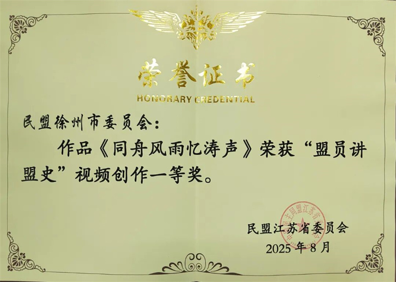 经评审,民盟徐州市委会拍摄的《同舟风雨忆涛声——忆民盟徐州地方组织创始人江涛声》获一等奖并上报民盟中央。视频创作人员均为我市盟员。编剧:姚冰阳;导演:张雪端;参演人员:王琛、张永杰、李菲、秦扬帆、蔡春雷;题字:马亚。