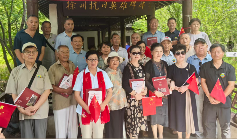 9月2日,徐州各界200余人手持国旗,胸佩“纪念抗战胜利80周年”纪念章,齐聚位于泉山森林公园的徐州抗日英雄纪念碑廊前,纪念抗日战争胜利80周年,弘扬伟大的抗战精神。