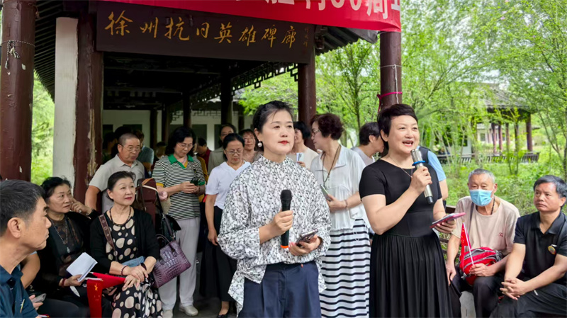随后,徐州风华书院的艺术家们激情地朗诵了黄楼诗社创作的一组《拜谒徐州抗日英雄纪念碑廊》的诗。徐州三中老三届知青合唱团引吭高歌抗战歌曲,将纪念活动推向了高潮。