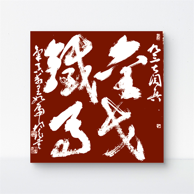 细观胡泳先生这幅《金戈铁马》,便被其独特的视觉效果所俘获。红底如烈火燃烧,白字似剑戟森然,强烈的色彩对比瞬间抓住眼球,直击心灵,仿佛将人带入金戈铁马的壮阔战场。