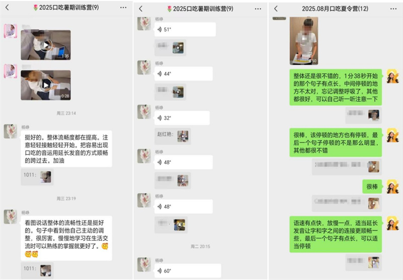 2025年8月,由康复科举办的口吃矫正暑期夏令营已经圆满结束了。本年度暑期共举办了两期口吃夏令营,招募13名学生。经过为期10节课的训练,同学们系统学习了口吃矫正策略,通过各种综合的实操方法,将所学的技能运用到交流中,降低了口吃发生率。让我们一起来看一看同学们“畅所欲言”的精彩表现吧!