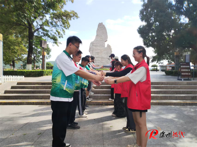 紧接着,大家在驿站前分两排合影“变装”、在寿石前摆出爱心形状、在台阶上敬水互道辛苦、在如意河边挽臂挥手,大家还认领了绿色的“铠甲”相约未来…之前的碧绿与现在的丹红交相辉映,志愿者用相机频频记录下这最美好的瞬间。市民游客们也纷纷拍照,共同见证我们换装的庄重时刻,他们不停地向大家微笑、招手,眼中充满了赞许的目光。