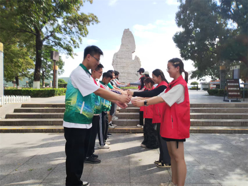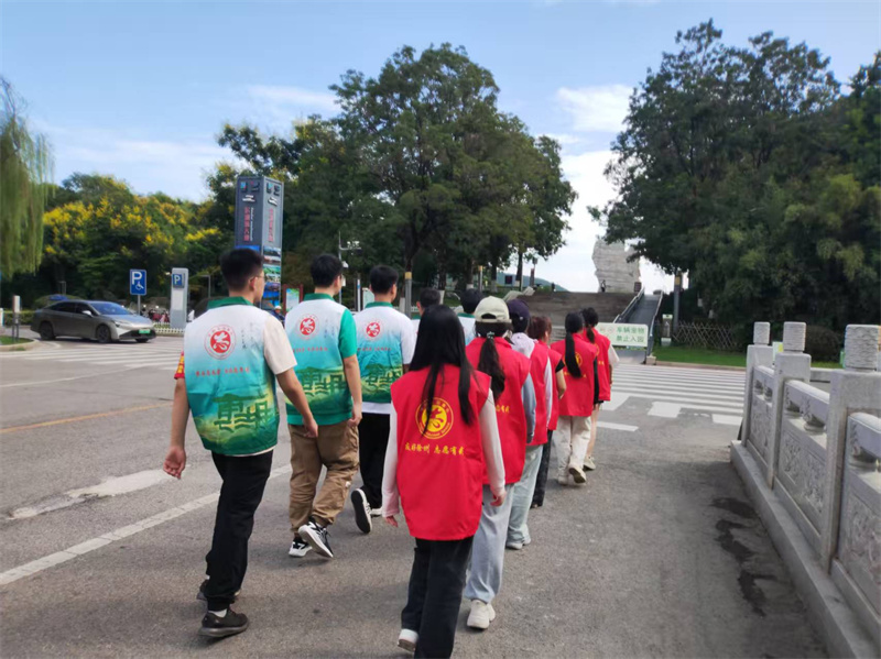 紧接着,大家在驿站前分两排合影“变装”、在寿石前摆出爱心形状、在台阶上敬水互道辛苦、在如意河边挽臂挥手,大家还认领了绿色的“铠甲”相约未来…之前的碧绿与现在的丹红交相辉映,志愿者用相机频频记录下这最美好的瞬间。市民游客们也纷纷拍照,共同见证我们换装的庄重时刻,他们不停地向大家微笑、招手,眼中充满了赞许的目光。