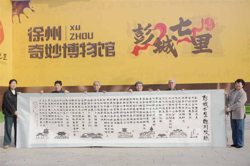 日下午,一件以“彭城七里徐州文脉”为题、融诗书画印于一体的巨幅画作,在彭城七里徐州美食博物馆南侧首次亮相,吸引了众人围观,赢得大家称赞!