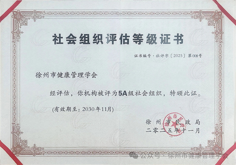 徐州市健康管理学会获评5A级别
