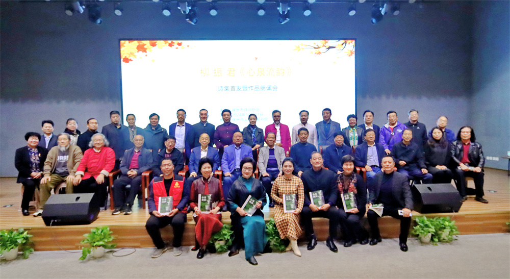 会议开始后,首先由徐州市诗词协会副会长、《徐州诗词》主编徐向中,对《心泉流韵》一书中,"爱我中华、家乡月明、心泉流韵、图影诗说、诗论诗家"五个篇章,作精要解读。接着由江苏省诗词协会副会长、徐州市人大常委会原副会长徐崇先,江苏师范大学原校党委书记、校长徐放鸣,中国矿业大学教授.博士生生导师肖庆元,徐州市作家协会原副主席李继玲,先后作重点发言。大家在发言中一致认为:诗人柳振君的新作《心泉流韵》,是一幅五彩斑斓的抒情画卷,作者通过个人的切身体验,对生活进行理性的思考后,发而为诗,体现了爱国爱乡、致敬先贤、颂扬英模、讴歌至亲、咏赞山河等的博大情怀、高远眼光、清雅心境。有的恢弘大气,有的豪迈奔放,有的委婉曲折,有的情思绵邈,等等,内容丰富,文字真挚,情绪饱满,发人深思,给人启迪。是近年来新诗界难得一见的一本好书。深圳大学特聘考授、一级作家张俊彪、新疆伊犁歌舞剧院副院长周雄彪,分别发来贺词; 身在外地的徐州市诗词协会会长宋善岭发来贺诗,祝贺大会圆满成功。