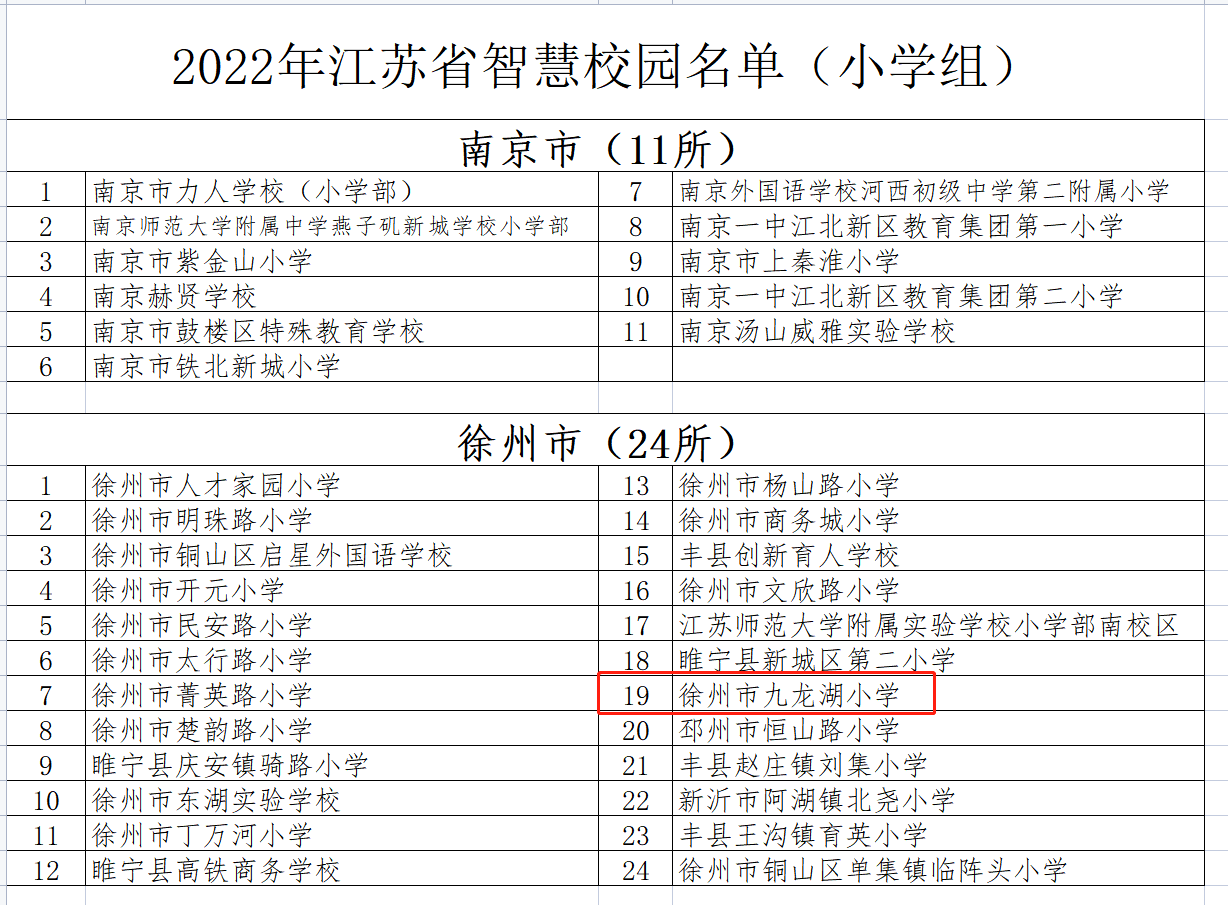 近日,江苏省教育厅、工业和信息化厅下发了《关于公布2022年江苏省智慧校园及示范校审核认定结果的通知》(苏教信函〔2023〕4号),徐州市九龙湖小学被认定为2022年江苏省智慧校园。 江苏省智慧校园的认定,是对学校信息化工作的充分肯定和鼓励。学校会继续秉持将“智慧教育”浸润到校园每一个角落的理念,努力促进信息技术与教育教学的融合创新,建设师生智慧发展的新型校园。